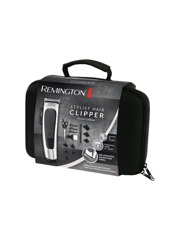 Harklipper, trådløs, Selvslibende blade, Reguleringshåndtag, 8 kamme – til forskellige hårlængder (3-25mm), 30 minutters driftstid, Opladningsindikator, Opbevaringstaske, Opdelingsklips, inkl. Frisørkappe – Kam – Saks – Nakkebørste, sølvUdfør din trimning